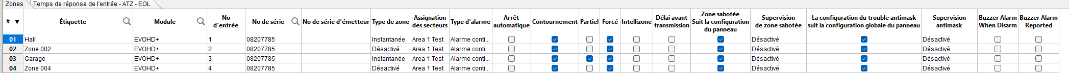 Dans Babyware, j'ai coché "Partiel" pour la zone 3 uniquement mais en armement "Partiel) (via clavier TM50).